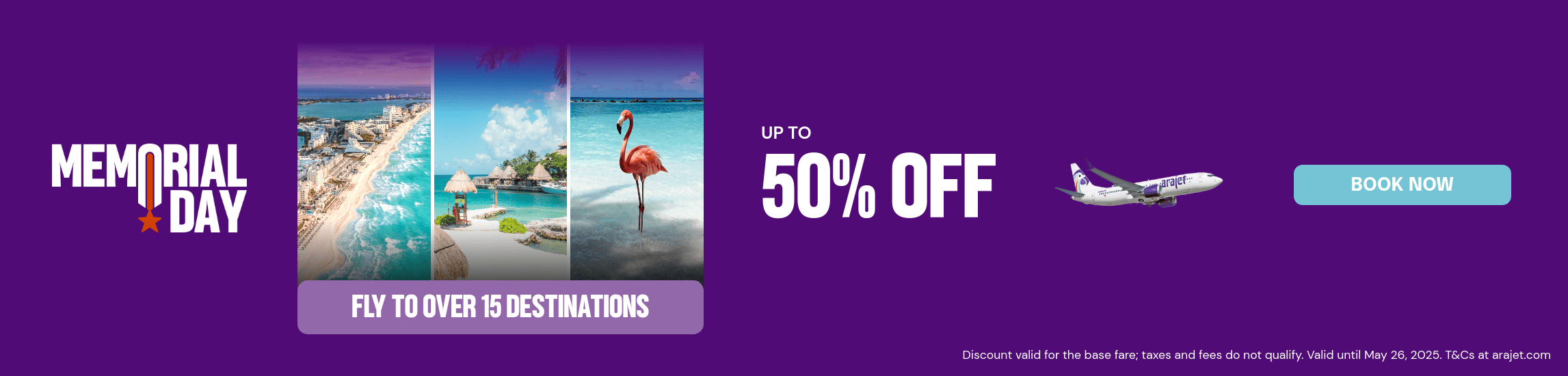 - The Promotion is subject to all Arajet terms and conditions available at www.arajet.com, section “Conditions of Carriage”.