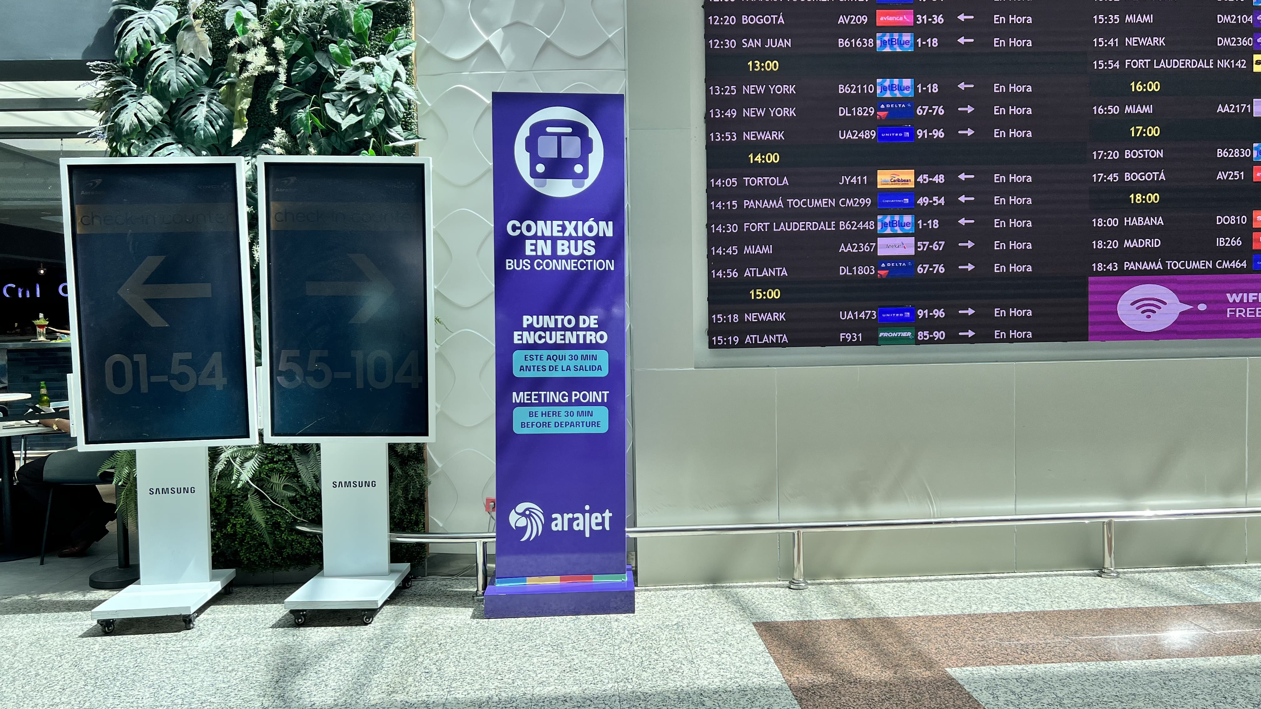 • Todo pasajero (conexión en bus o llegada directa) debe dirigirse a nuestro Punto de encuentro, en el segundo piso de la Terminal B1 del Aeropuerto Internacional de Punta Cana, cerca del área #4 de mostradores.