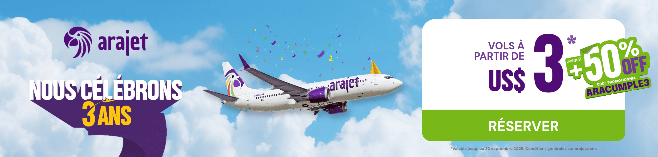 Pour la première fois, un rabais sur rabais : tarifs promotionnels dès 4 CAD ✈️ et, avec le code ARACUMPLE3,